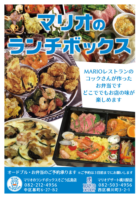 より多くの方にマリオデザートの美味しさと幸せを! マリオデザートのお店の中でも、ココだけにしかない商品をたくさん取りそろえております。 紙屋町付近に来られた時には、ぜひそごう本館地下1階にお立ち寄りください。中・四国地区最大規模のデパ地下で、皆さまがお買物を思う存分楽しんでいただけるよう、スタッフ一同笑顔でお待ちしております。 |