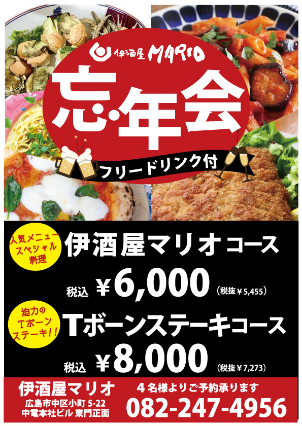 忘年会ほか、ご予約承り中!詳細は各店舗にお問い合わせください。