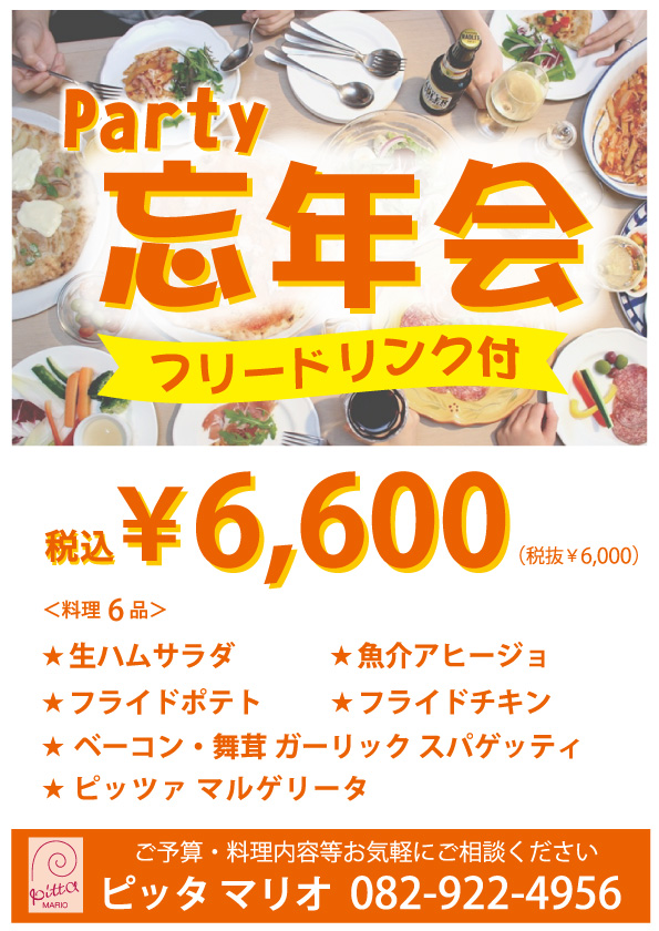 サン・マリオレストラン各店では、パーティプランをご用意しています!旬な食材を豊富に使ったコース料理をぜひお楽しみください。