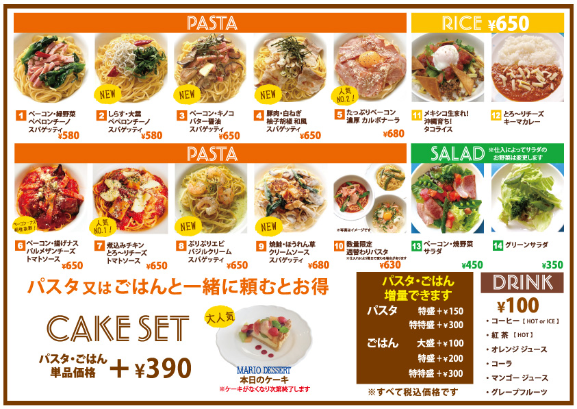 | 今年もやります!! パスタ 大盛無料 |