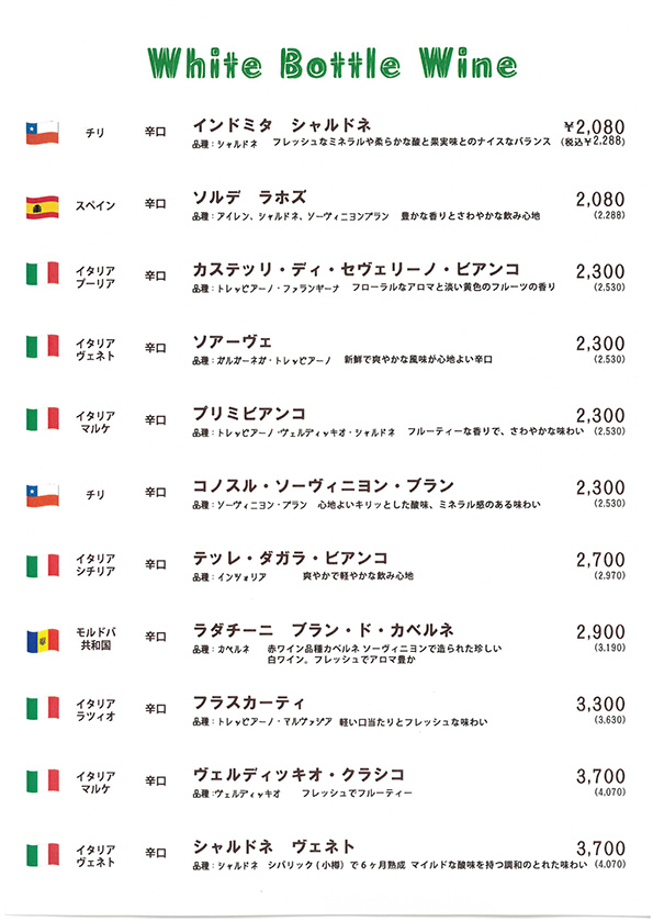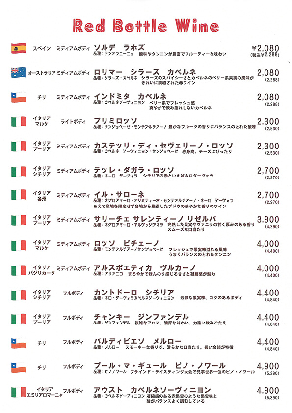 ボッカロッソの商品をお持ち帰りできます。 季節により内容が変わる事があります。 |