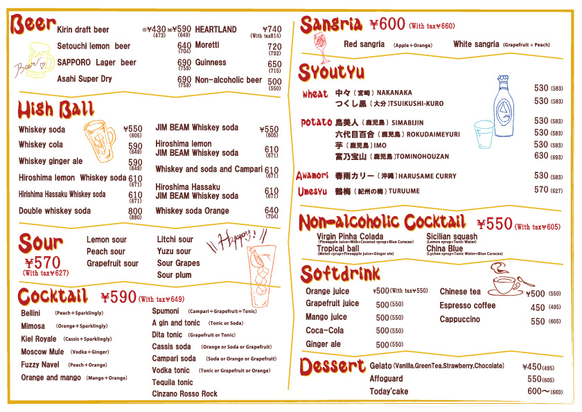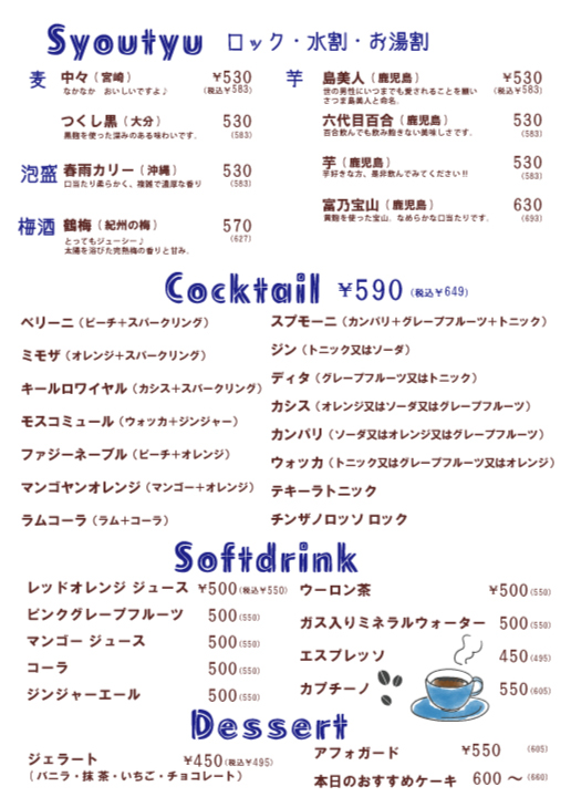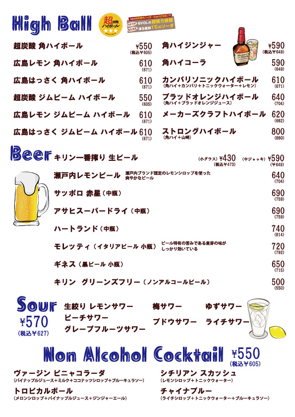 | フリードリンク120分 |
